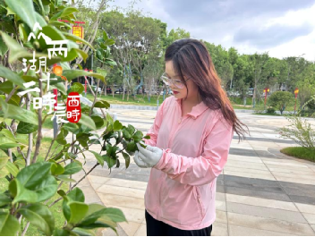 傍晚7點,園林工程師黃瑞雪仍在巡查綠化。她輕撫山茶花的葉片,兩湖的每一棵喬木、每一片水草,都離不開她的專業“把脈”。
