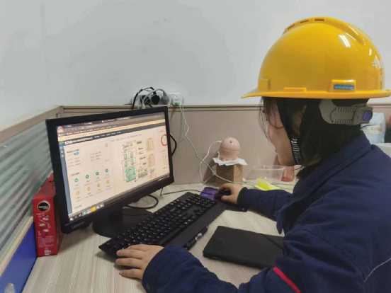 鶴問湖污水廠二期項目運維人員正在操作水務通界面